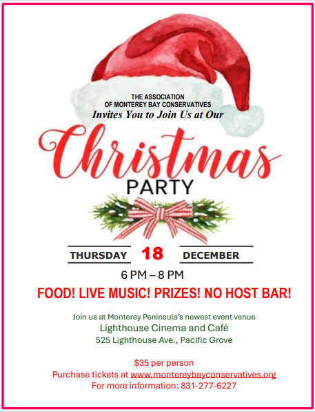 Association of Monterey Bay Conservatives is an independent organization, whose mission is to support and defend conservative principles, to educate and encourage our members and community to engage in the political process, to make informed voting decisions, to support qualified conservative candidates and to increase effectiveness of conservatives through active political participation.